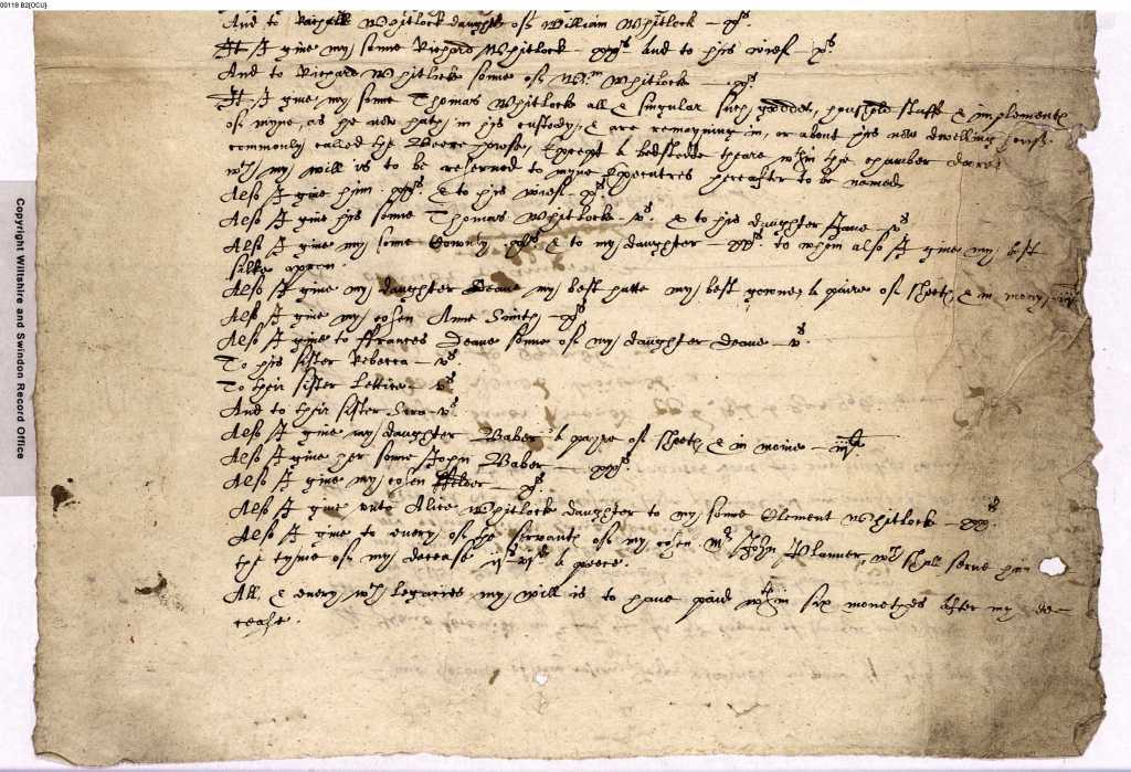 [7] See Peter Whitlock’s abstract of the will in his notes from the Public Record Office in London, file PRO 18 in the section of Whitlock Family-One Name Study archiving Peter Whitlock’s notes.