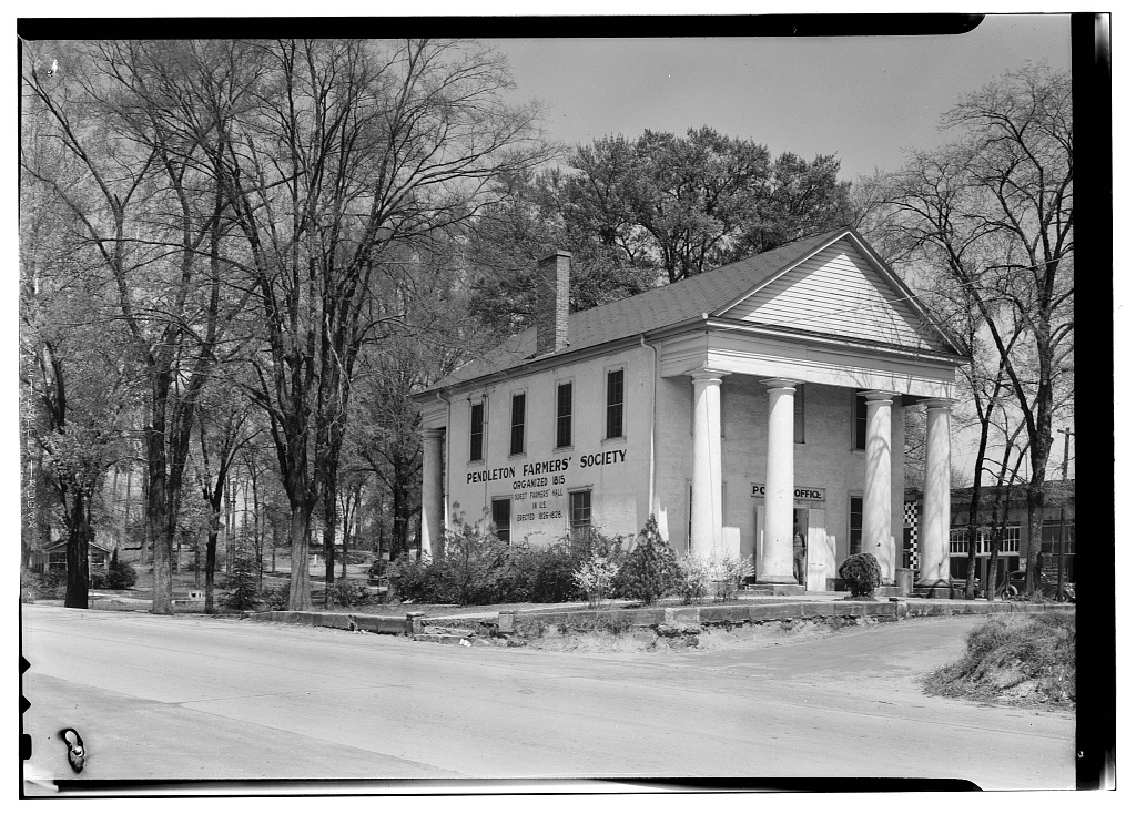 [19] R.W. Simpson, History of Old Pendleton District, with a Genealogy of the Leading Families of the District (Anderson, South Carolina: Oulla, 1913), p. 23. See also Pendleton District Historical and Recreational Commission, Pendleton Historic District: A Survey (Pendleton, South Carolina: Pendleton District Historical and Recreational Committee, 1973), p. 26, which offers a photo of the society’s building built between 1826-8; and see “Pendleton Farmers’ Society Membership Roll,” in the Mary Stephenson Collection of Clemson University Library’s Special Collections and Archives (box 21, folder 5, mss 353), which shows John Green as a member of the society in 1815.