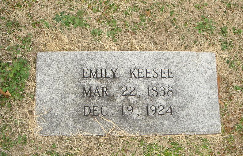 Thomas’ tombstone in Shiloh cemetery records his dates of birth and death. The tombstone of his wife Emily Michaux Keesee, who is buried with him in Shiloh cemetery, states that she was born 22 March 1838 and died 19 December 1924. Emily’s death certificate, with her son Frank Willard Keesee reporting the information, gives these dates of birth and death and states that Emily was born in Gainesville (Sumter County), Alabama, and died at Waxahachie in Ellis County. The death certificate also gives Emily’s parents’ names, with the mother’s name given as Emily Murray, as stated above.