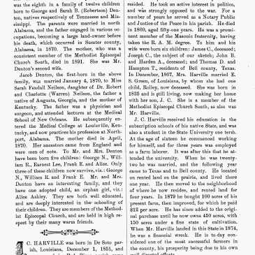 Or, Subtitled: “Died at the ripe old age of 85 years at the residence of her son, J. C. Harville” As the previous posting states, the combined succession documents of James G. Birdwell and his wife Aletha Leonard give us the names of the six youngest children of James and Aletha: Dewitt Clinton, Thomas, Camilla, … More Children of James G. Birdwell and Aletha Leonard of Alabama and Louisiana – Elvira, Hannah, John B. Birdwell