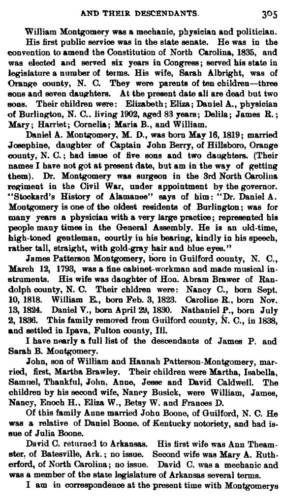 [4] D.B. Montgomery, A Genealogical History of the Montgomerys and Their Descendants (Owensville, Indiana: J.P. Cox, 1903), p. 306.
