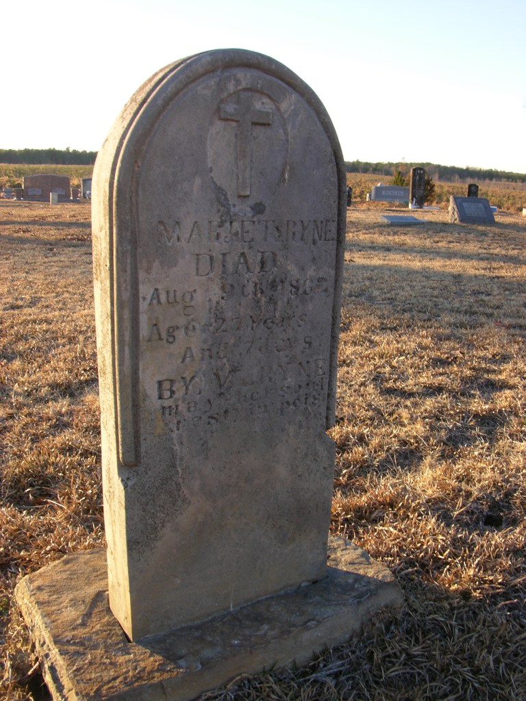 My attempt to find specific information about a possible daughter of Robert and Catherine and about precisely when Catherine married George R. Batchelor is complicated by the fact that I cannot find either Catherine Ryan Sumrall or George R. Batchelor on the 1870 federal census. I do find Robert A. Sumrall and his daughter by Margaret Ryan, Mary Margaret Sumrall. In 1870, Robert was living in the household of his brother William Wesley Sumrall at Ellisville in Jones County, Mississippi, and his daughter Mary Margaret was also living at Ellisville in the household of William T. Harper and wife Amanda Adaline Collins.[5] The census shows Robert aged 39 and working as a farm laborer, with his brother William listed as the farmer for whom he’s working. Mary Margaret’s name is given as Elizabeth. She is 10 years old and the census states that she was born in Mississippi. The 1880 federal census, which shows Mary Margaret continuing to live with William and Amanda Harper, lists her as M.S. Harper and states that she was born in Arkansas and was aged 18 in 1880.[6] Mary Margaret’s tombstone in Lebanon cemetery at Laurel, Jones County, Mississippi, gives her name as Margrett E. Harper.[7]