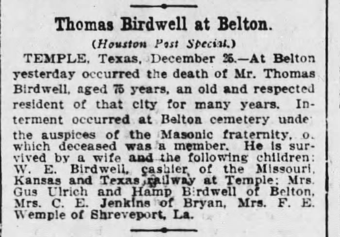 2 thoughts on “Children of James G. Birdwell and Aletha Leonard of Alabama and Louisiana – DeWitt Clinton, Thomas, and Camilla Birdwell”