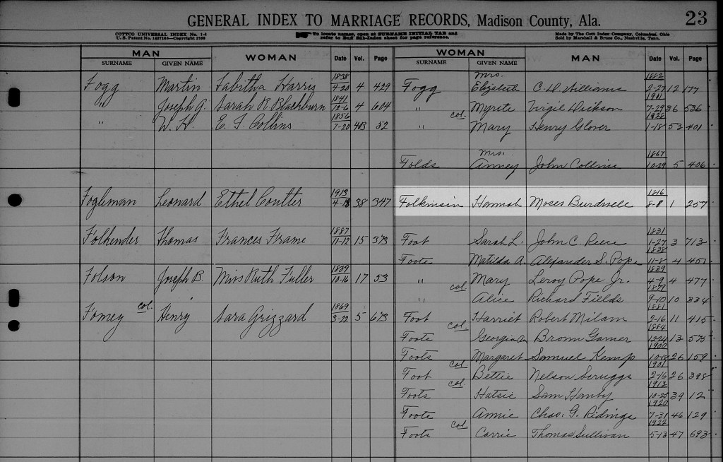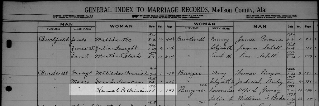 [23] Madison County, Alabama, Marriage Bk. 1, p. 261, no. 514.