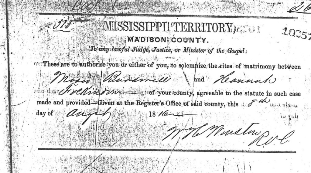 3 thoughts on “Moses Birdwell (1769-1849): Madison County, Mississippi Territory Years, 1811/2 – 1818”