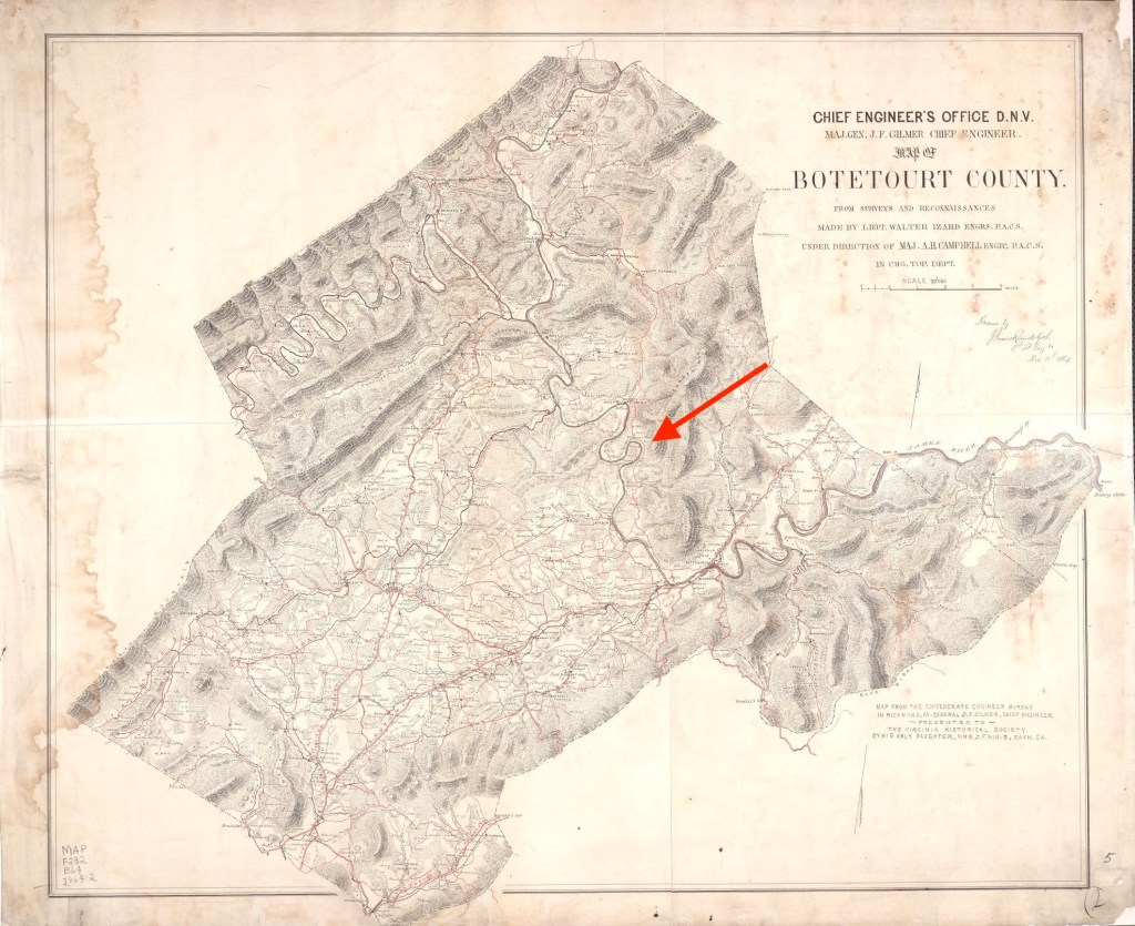 [33] Confederate States of America, Army, Department of Northern Virginia, Chief Engineer’s Office, Map of Botetourt County (1864), available digitally at Library of Congress website.