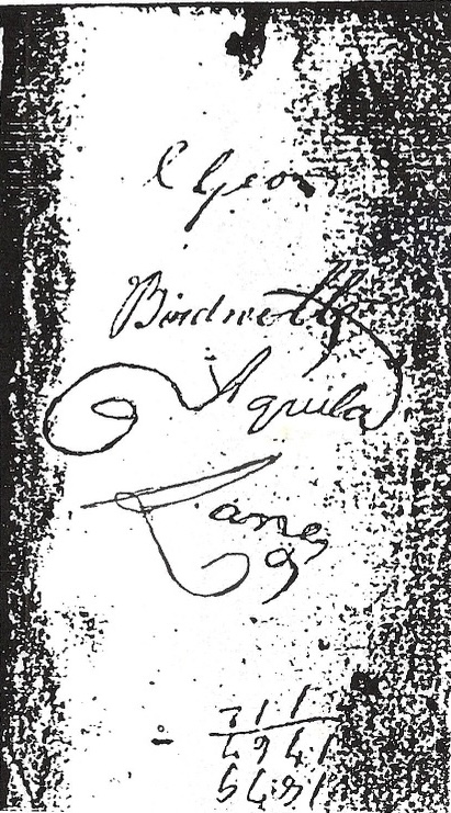 One page in the bible register appears to have only the names Geo. Birdwell and Aquila Lane. It’s clear to me when I look at the Geo. Birdwell name that this does not match George Birdwell’s signature in the two documents I’ve just mentioned that have George’s signature. There’s no explanation in the bible register for why Aquila Lane’s name is recorded here. Aquila Lane (1753 – 1819) served in 1779 in Captain William Russell’s company of Colonel William Christian’s First Virginia Regiment.[11] This service record appears to place Aquila in Fincastle County, from which most of those in Russell’s company served. Fincastle was formed out of Botetourt County, where George Birdwell lived up to 1779 when he moved to Sullivan County, North Carolina (later Tennessee). Aquila Lane received a land grant in Sullivan County in February 1779 and seems to have spent some time there before moving to Greene County, North Carolina (later Tennessee), where he lived on land that fell into Jefferson County, where he died testate with a will dated 29 April 1816, proved in March 1819.[12]