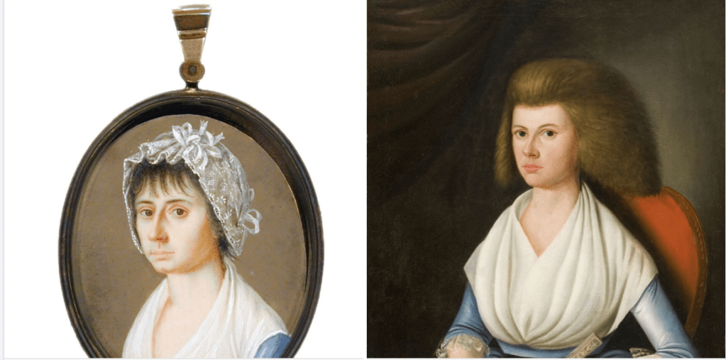In addition, because the portrait of Elizabeth shows such a family resemblance when it’s placed side by side with the portrait of her sister Floride owned by Atlanta’s High Museum — it’s featured in the second posting linked above — I’ve added a side-by-side image of the two portraits to the second posting linked above, so that readers can compare the two pictures of these Bonneau sisters.