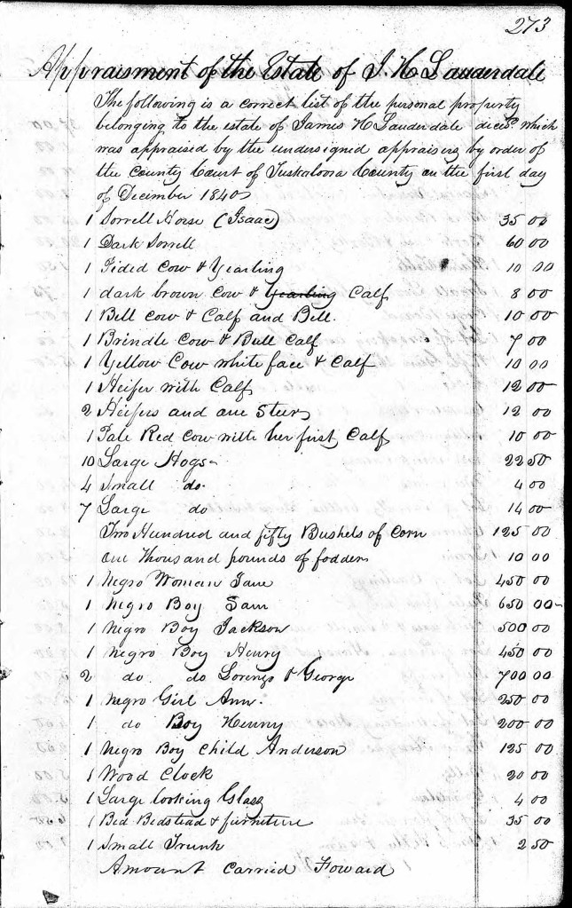 [10] Tuscaloosa County, Alabama, Inventory book 1837-1842, pp. 273-6.
