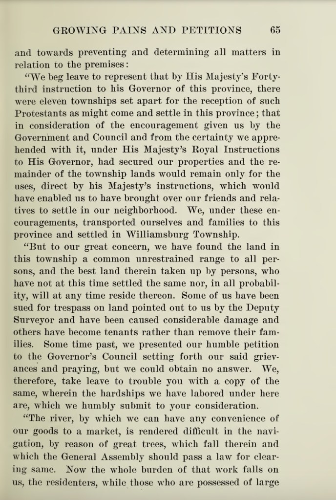 The January 1742 petition establishes that George Montgomery was in Williamsburg township prior to January 1742. The petition also suggests that all or many of those signing the petition came to South Carolina from Ireland, since it states,