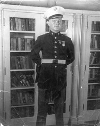 I have a picture of my father with his platoon, the 16th Platoon of the U.S. Marine Corps, taken at San Diego in April 1941. I also have a 21 August 1941 letter he sent to his parents from USS Pennsylvania, Marine Detach, c/o Fleet post office, Pearl Harbor, Q.H. The letter was sent via his brother Carlton, then living with their parents at 300 Center Street in Little Rock. By 1942, according to the Little Rock city directory, my grandparents had moved to 3023 Marshall Street, and their son Carlton was living with them and working as a clerk for the “US Emp Serv” (US Employment Service), according to the city directory. My Aunt Helen Blanche is not listed with her brother and parents in that 1942 city directory because she had entered the nursing school of Warner Brown Hospital in El Dorado, Arkansas, and was studying nursing there with the Sisters of Mercy who operated the hospital.