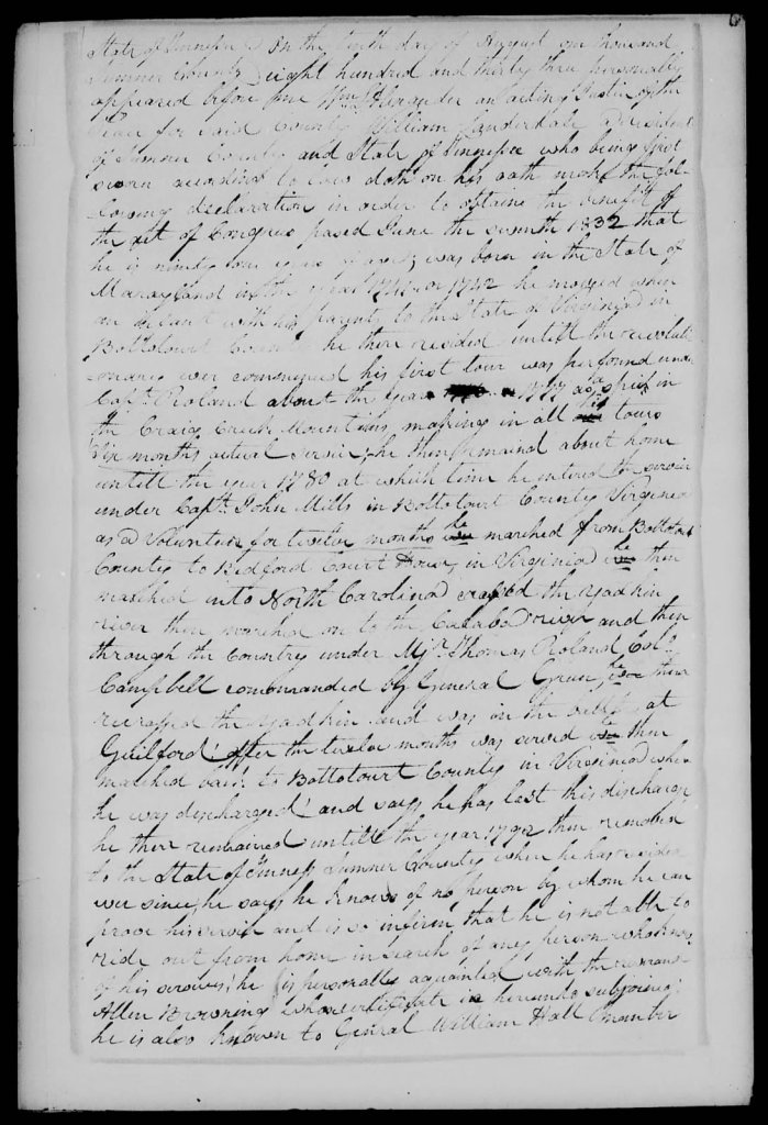[6] NARA, US, Revolutionary War Pensions, 1800-1900 RG 15, file of William Lauderdale VA S4505, available digitally at Fold3.