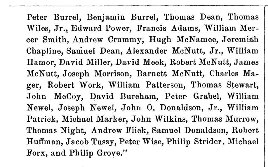 Hagerstown, where this militia unit was formed, is a bit over thirteen miles north of Sharpsburg. The town was originally known as Elizabethtown, and Scharf is citing minutes of the Elizabethtown District Committee of Observation for 5 June 1776, which say that on that date, a list was presented to the committee compiled on 6 January 1776 of a group of men who signed their names to a resolution to form a militia per a resolution of the Provincial Convention held at Annapolis on 26 July 1775.[6]
