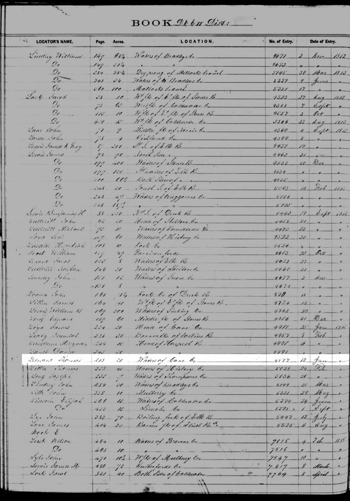 [29] Tennessee Land Entries 1812-3, series 2, p. 213, entry no. 4877. This same date is stated in Tennessee Land Entries 1811, unpaginated, arranged by entry date.